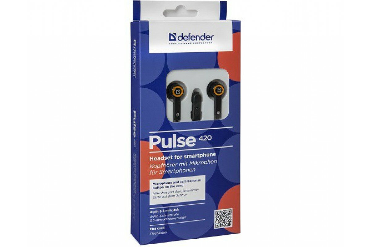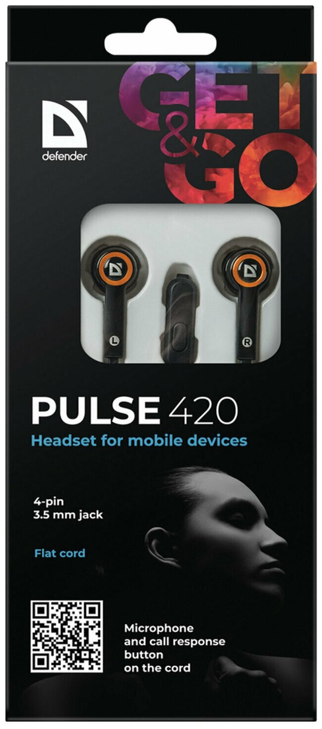Defender Гарнитура для смартфонов Pulse 420 черный + оранжевый, вставки