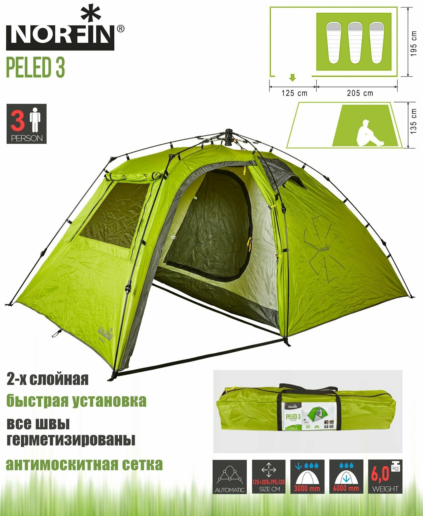 Палатка автоматическая трехместная Norfin PELED 3 NF NF-10405