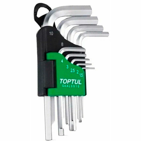 Набор коротких Г-образных шестигранников Toptul, 1.5-10 мм, 9 предметов GAAL0910 интересное: