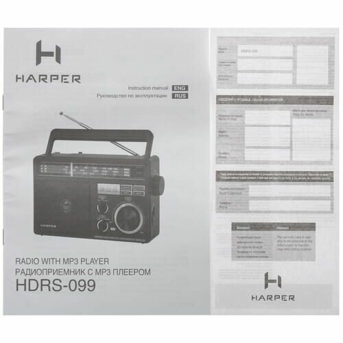Радиоприемник HARPER HDRS-099 (Дисплей; USB; SD карта; радио)