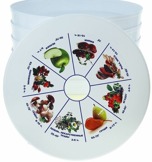 | Плюсы: | Простая и понятная в эксплуатации. Без зауми. Благодаря картинке на верхней крышке, понятно, что и сколько времени сушить и на какой температуре. Остается только повернуть ручку на нужное деление. Правда, за временем надо следить самостоятельно. |