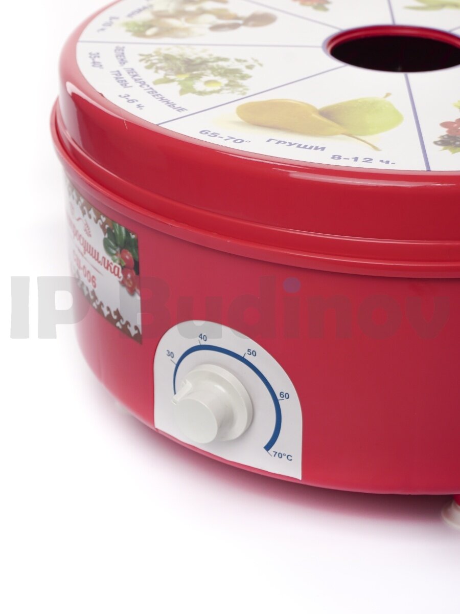 | Минусы: | Верхняя крышка плотно не закрывается. Долго сушит,тонко нарезанные яблоки сушили 3-е суток,сожгли огромное кол-во эл.энергии |