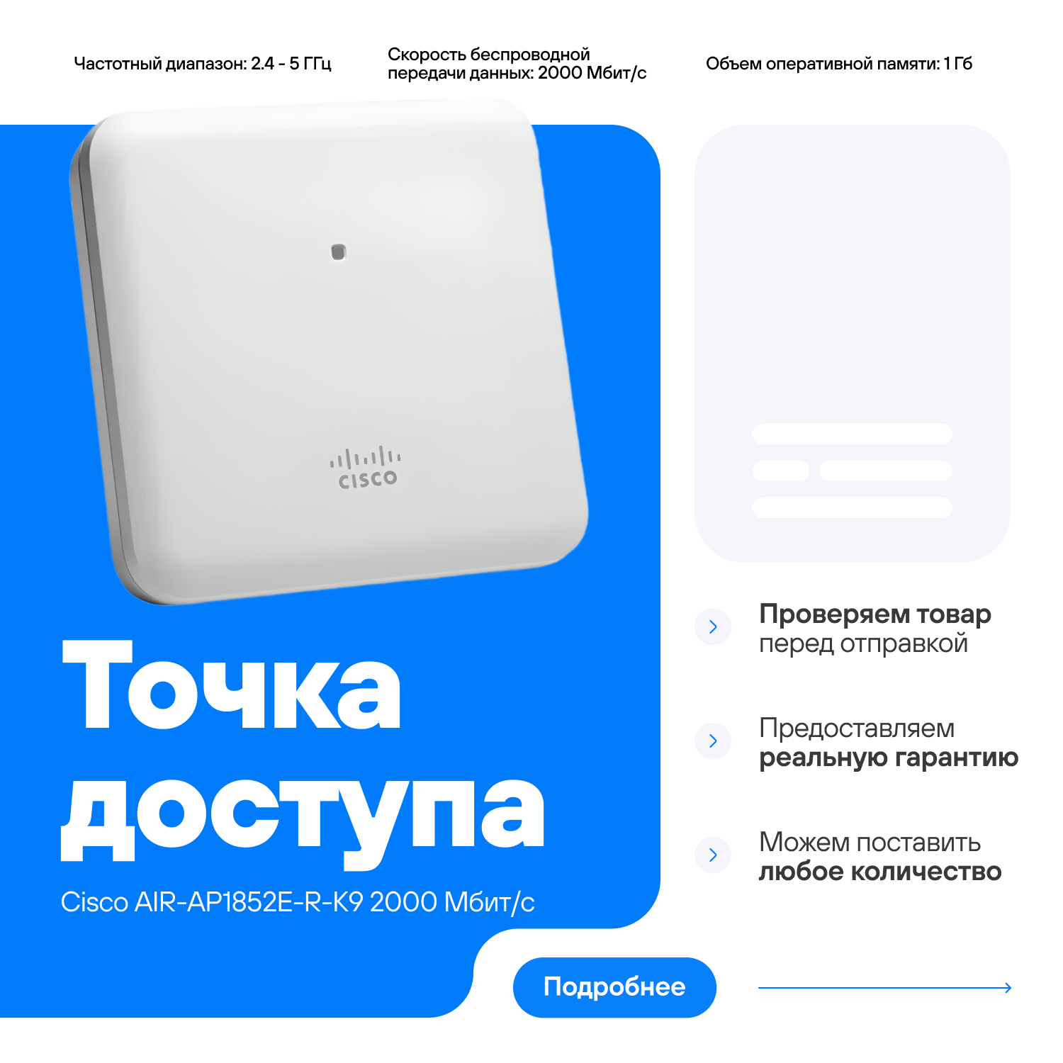 Точка доступа Cisco Aironet AIR-AP1852E интересное: