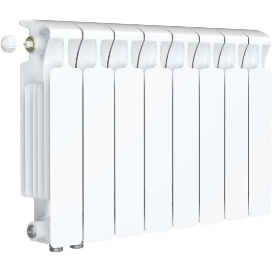 Радиатор биметаллический Rifar Monolit Ventil 350, 08 секций, Нижнее подключение правое (МVR), цвет белый