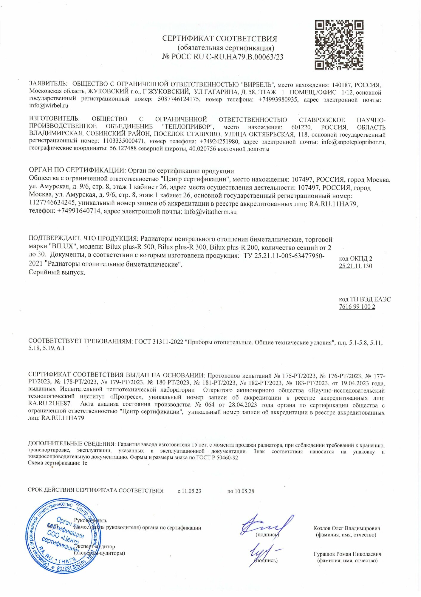 Секционный биметаллический радиатор Билюкс BiLUX plus R200 \ 14 секций \