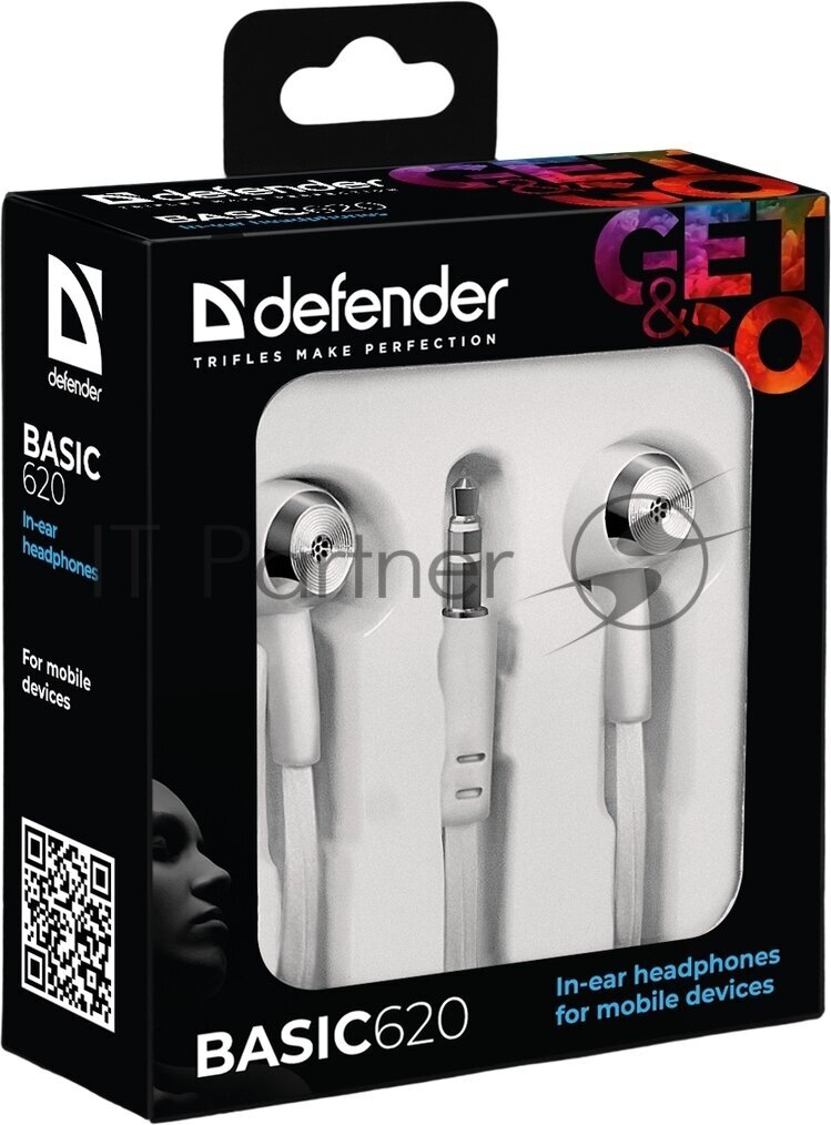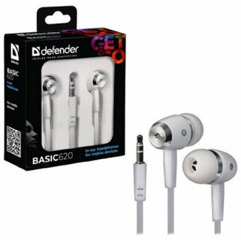 Наушники вставки DEFENDER Basic 620 белый [10mm, 20Гц~20kГц, 32 Ом, 1.1 м]