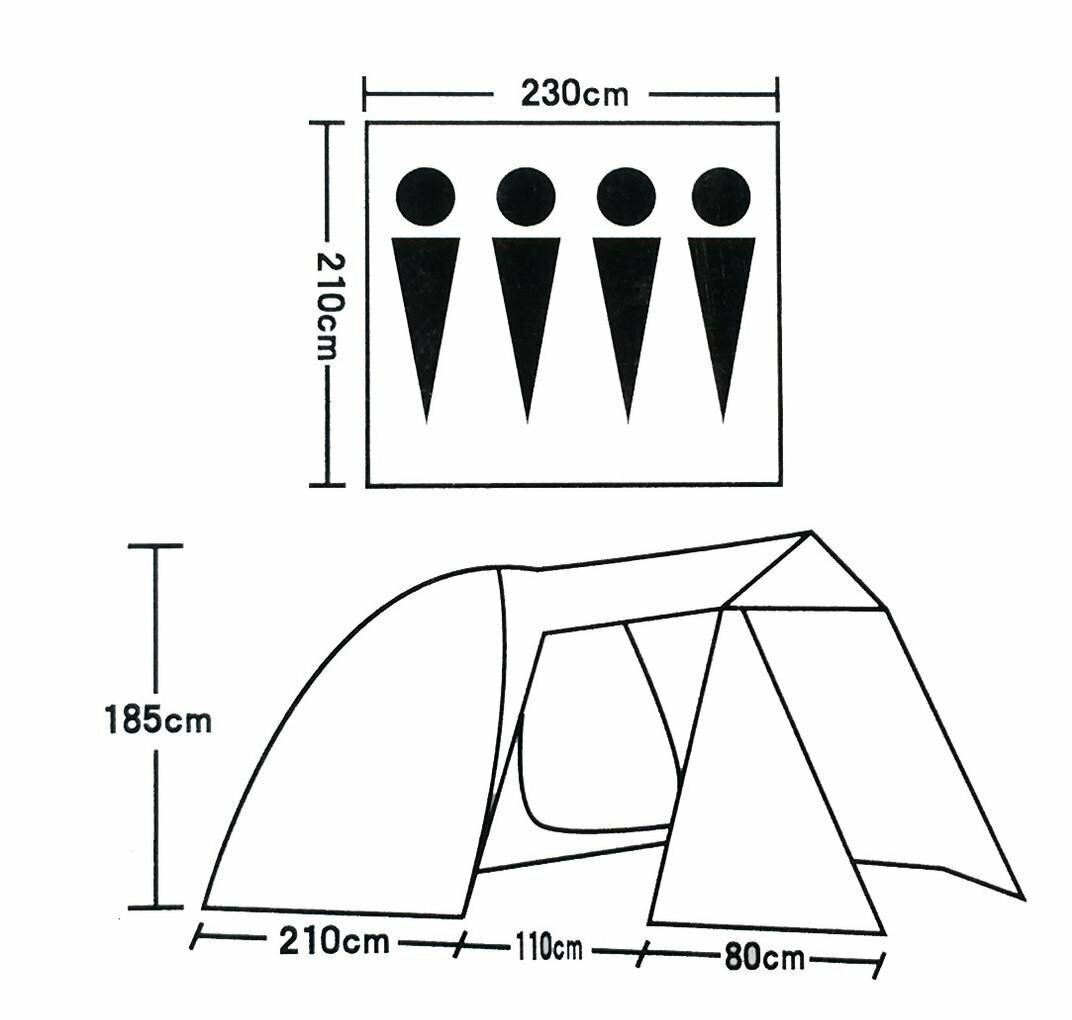 Палатка кемпинговая четырехместная с тамбуром и навесом Lanyu LY-1704, 400*230*185 см