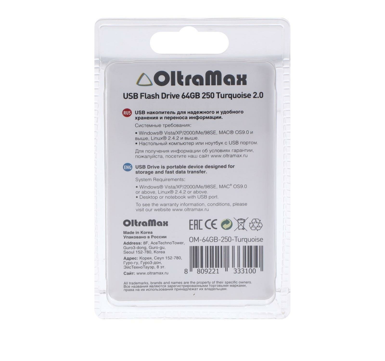 Купить Флешка Oltramax OM-64GB-250-бирюзовый 64 Гб Turquoise