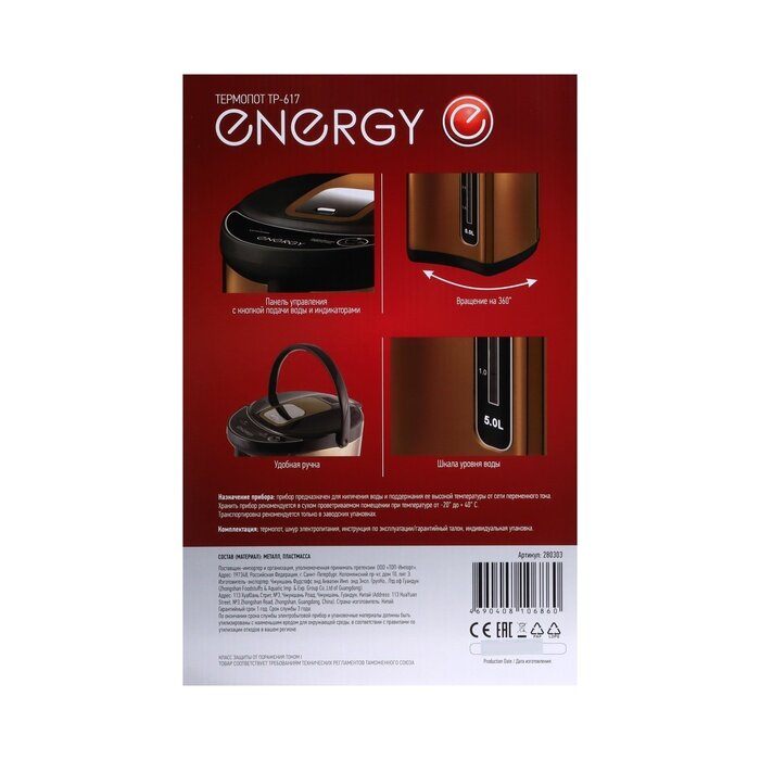 СохранитьТермопот Energy TP-617 золотой (5 л, 750 Вт), 280303 (Артикул: 4100003941) интересное:
