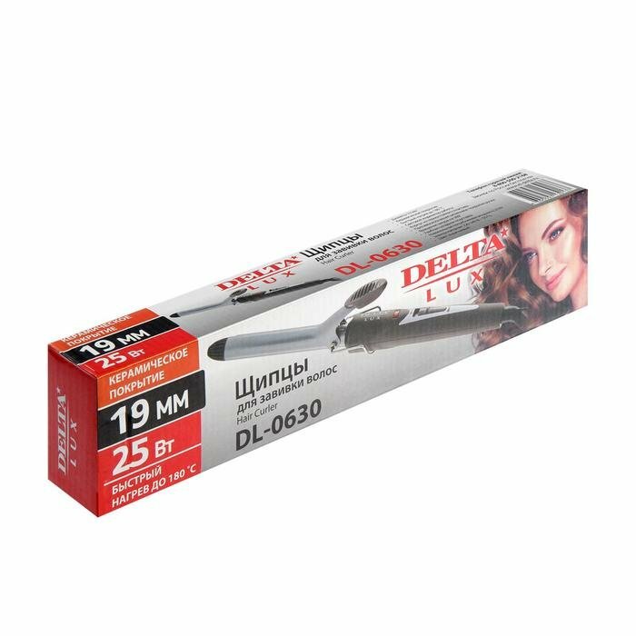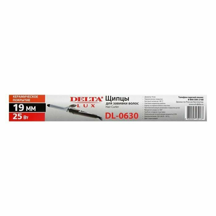 Плойка DELTA LUX DL-0630, 25 Вт, керамическое покрытие, d=19 мм, до 180°С, чёрно-коричневая