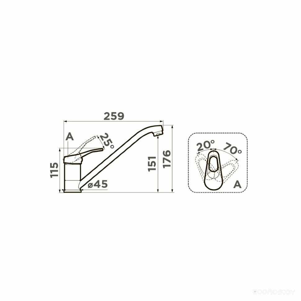 | Высота излива | 151 мм / 176 мм |