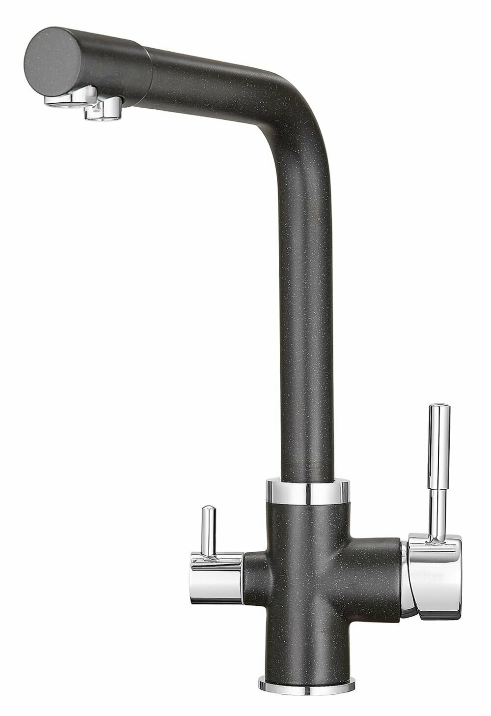 Купить Смеситель для кухни Granula / Гранула 2015 двухрычажный с подключением фильтра питьевой воды, гибкая подводка гранит черный, высота 290мм излив 210мм / кран для раковины