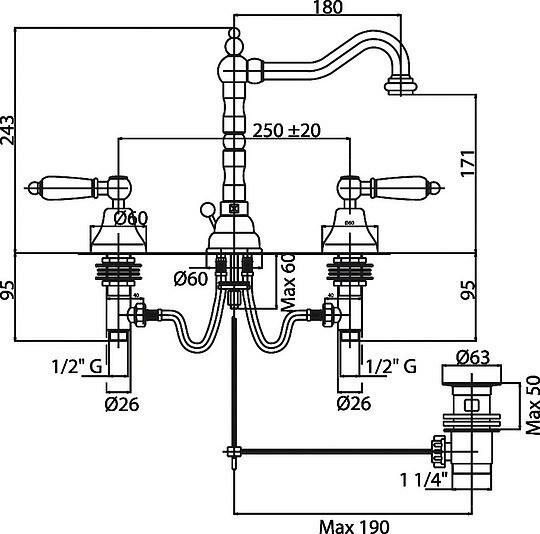 Cezares Смеситель на раковину на три отверстия с донным клапаном CEZARES DIAMOND-BLS2-03/24-Sw