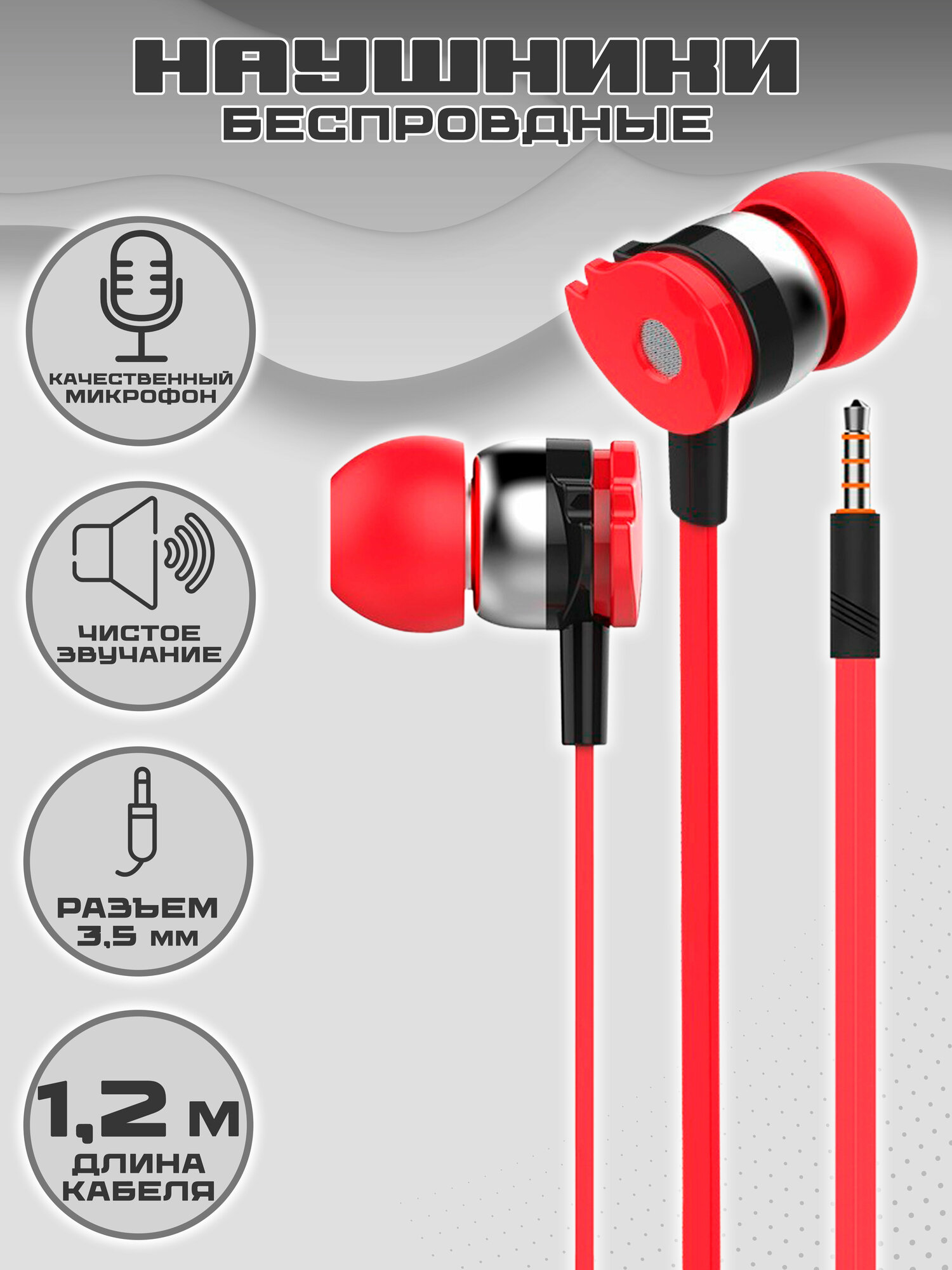 Наушники внутриканальные Celebrat D1, 1.2m, 3.5 jack,красный