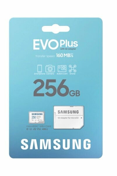 Карта памяти Samsung 256GB microSDXC Evo Plus UHS-I, U3, V30, A2 130MB/s (MB-MC256KA)