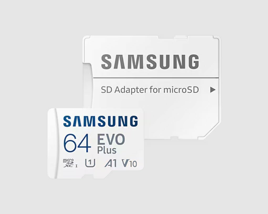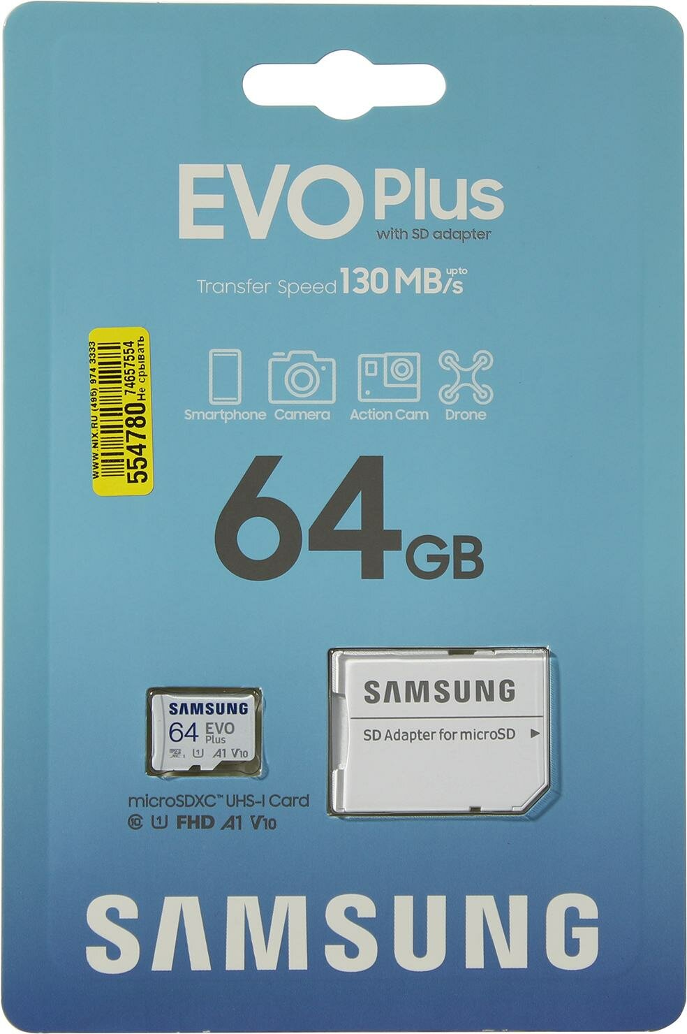 Карта памяти Samsung EVO Plus microSDXC 64 ГБ Class 10, V10, A1, UHS-I U1, R 130 МБ/с, адаптер на SD