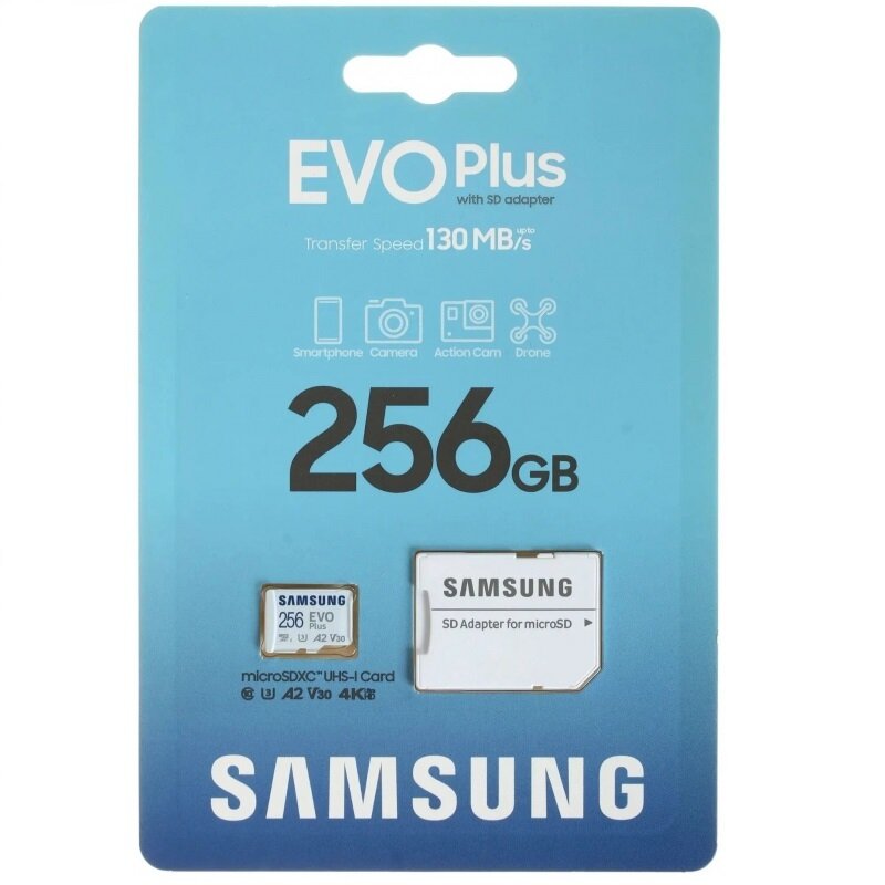 Карта памяти Samsung 256GB microSDXC Evo Plus UHS-I, U3, V30, A2 130MB/s (MB-MC256KA)