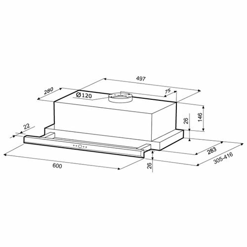 Встраиваемая вытяжка Krona Kamilla 600 slim, управление кнопочное, 2 мотора, черный/нержавеющая сталь [00020960]