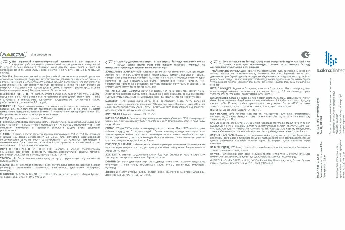 Лак акриловый лакра 2,5кг орегон, арт.лт-орегон2,5