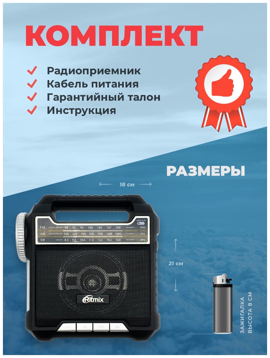 Ниже Вы можете прочитать отзывы на Радиоприемник Ritmix RPR-444, двойной фонарь, usb, SD, microSD, mp3, FM, СВ AM, КВ SW, питание 3*D*4.5-220 вольт, ручка, ознакомится с подробными характеристиками, посмотреть интересные обзоры и фотографии на Радиоприемник Ritmix RPR-444, двойной фонарь, usb, SD, microSD, mp3, FM, СВ AM, КВ SW, питание 3*D*4.5-220 вольт, ручка.