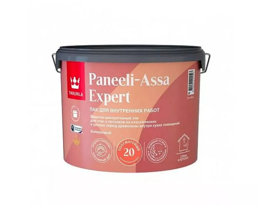 TIKKURILA PANEELI ASSA 20 лак интерьерный колеруемый для стен и потолков, полуматовый (2,7л)