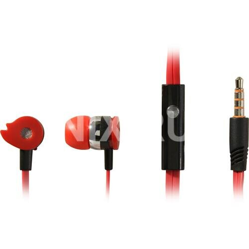 Наушники-гарнитура OKLICK D1R красные, с плоским кабелем и подключением 3.5 мм
