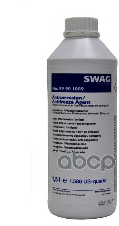 СохранитьSWAG 99901089 Антифриз (концентрат) 1,5л, синий, G11, MAN 324 NF, MB 325.0, MB 325.2, VW TL 774-C интересное: