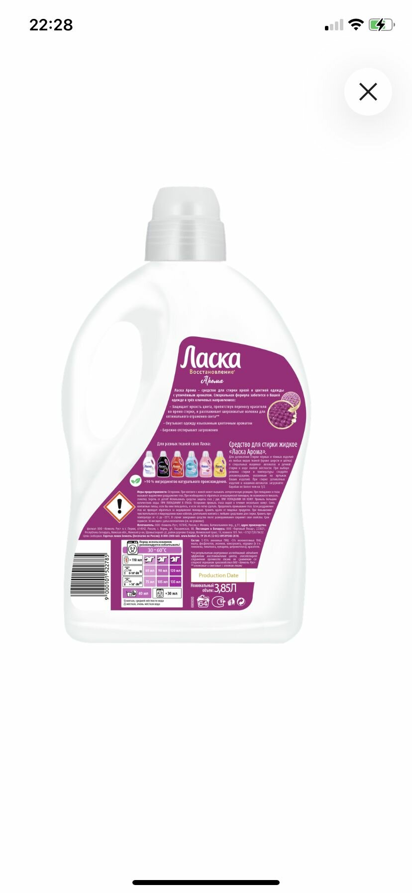 Купить Гель для стирки Ласка Арома-Восстановление, 3.85 л (64 стирки)