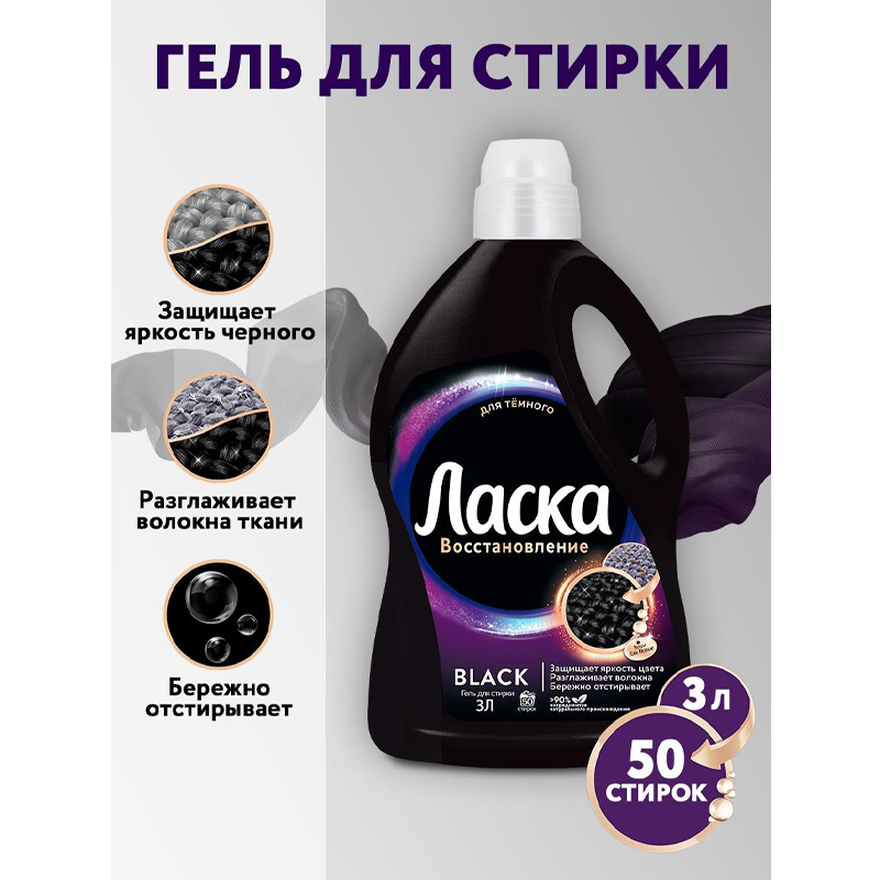 Гель для стирки Ласка Восстановление черного 3D, 2 л