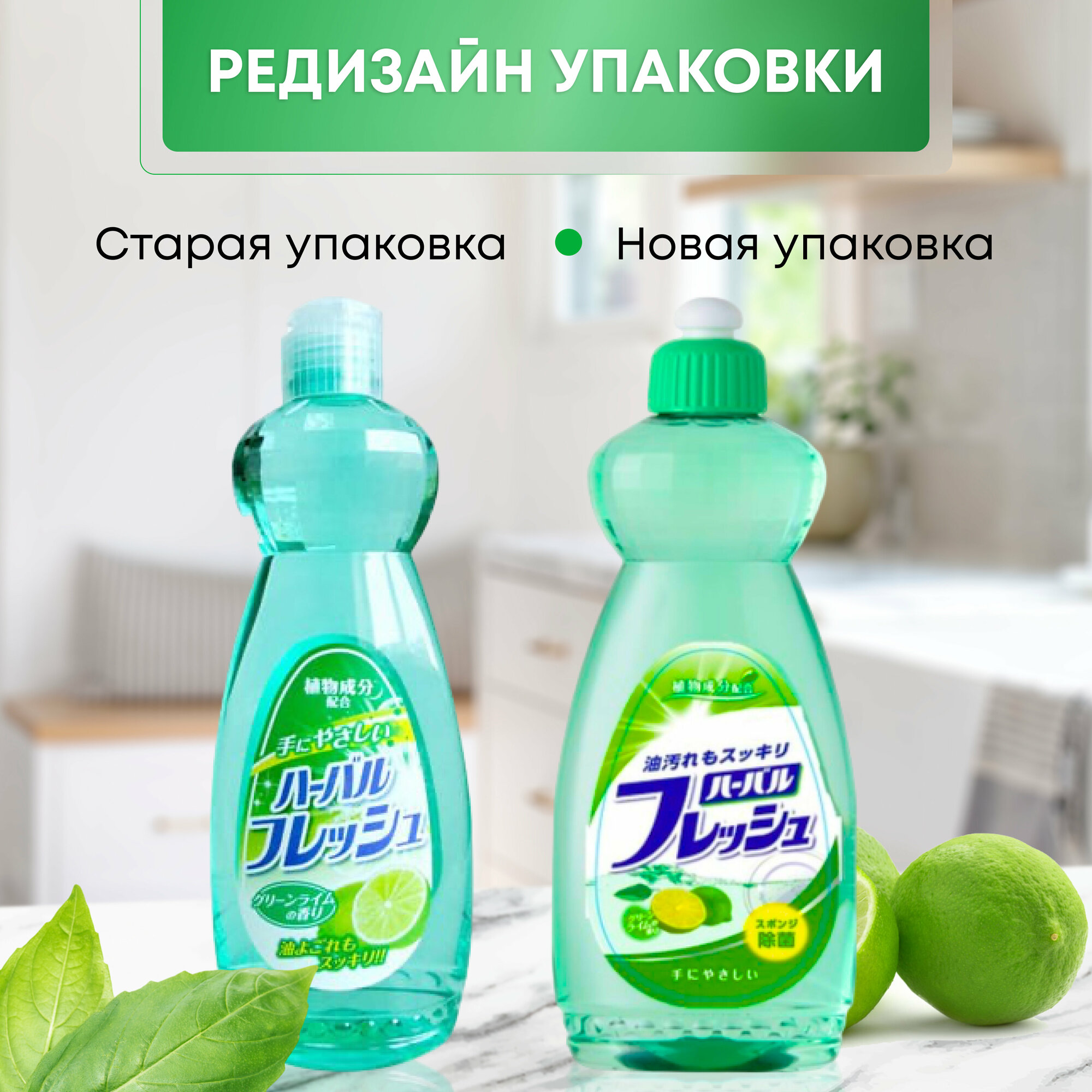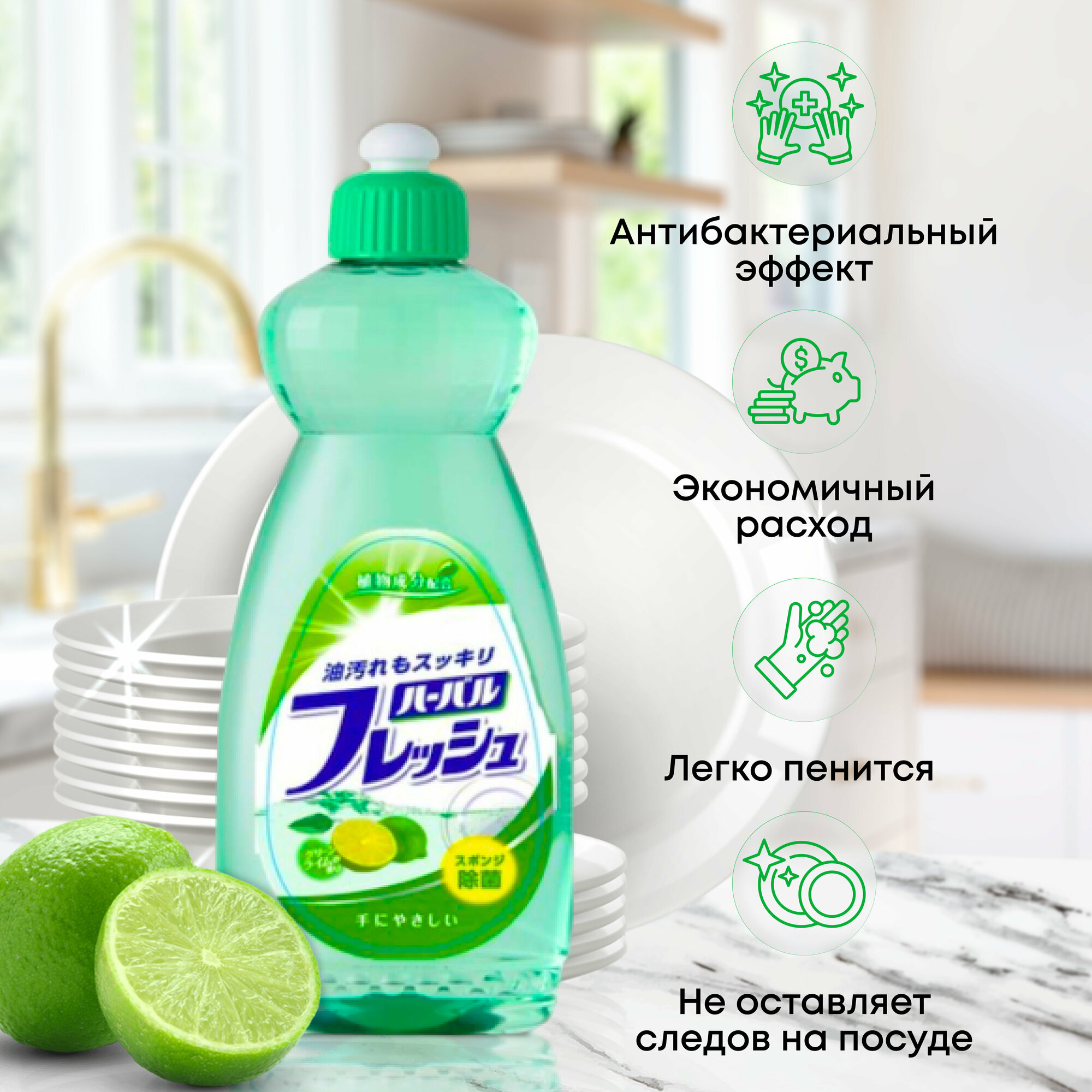 Японское средство для мытья посуды, овощей и фруктов, биоразлагаемое, антибактериальное, с ароматом лайма, 600 мл, Mitsuei, Япония