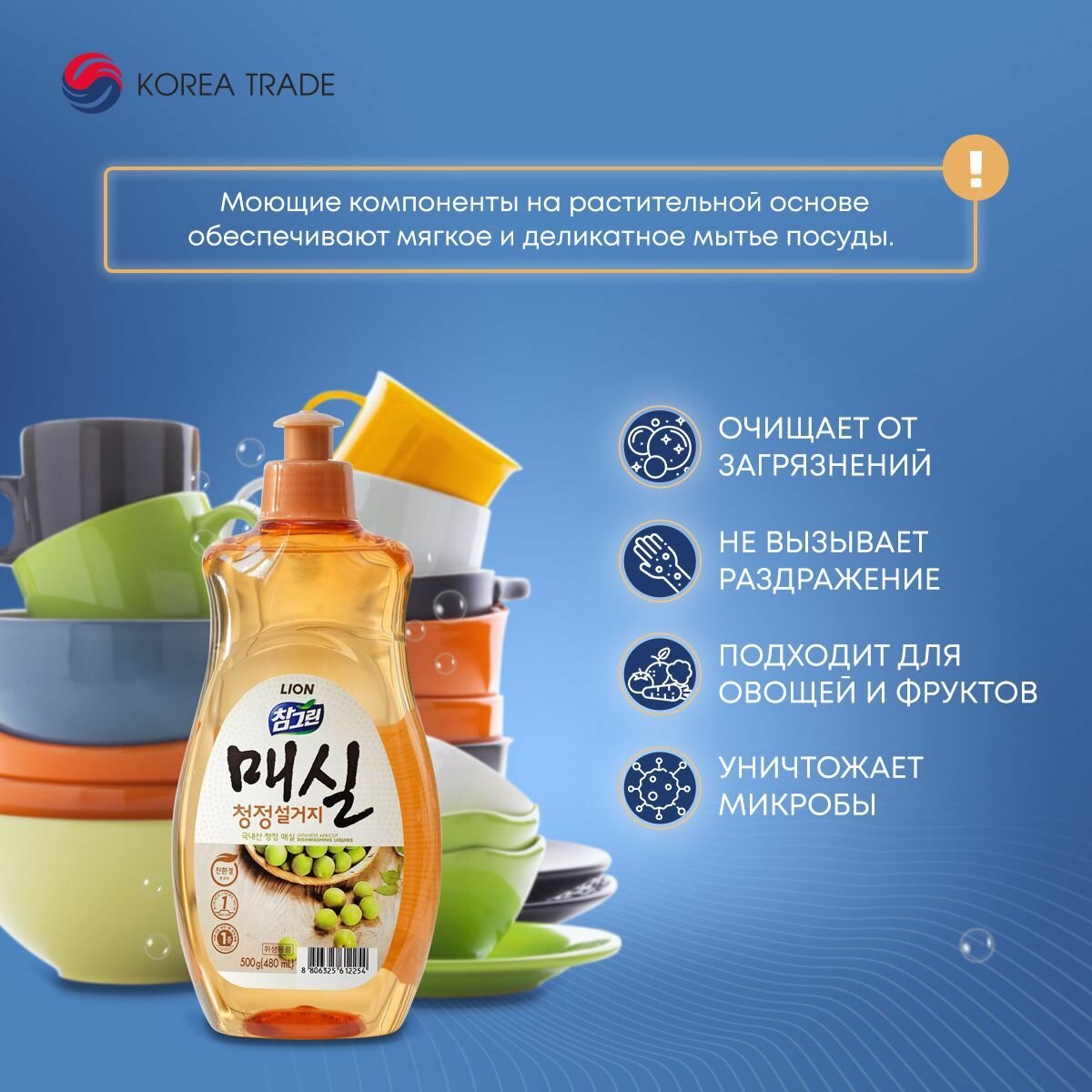 Средство для мытья посуды, овощей и фруктов 480 мл, CHAMGREEN японский абрикос, Lion, 8806325612254