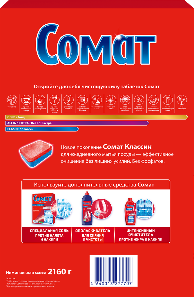 Таблетки для посудомоечной машины Сомат Classic таблетки, 140 шт., коробка