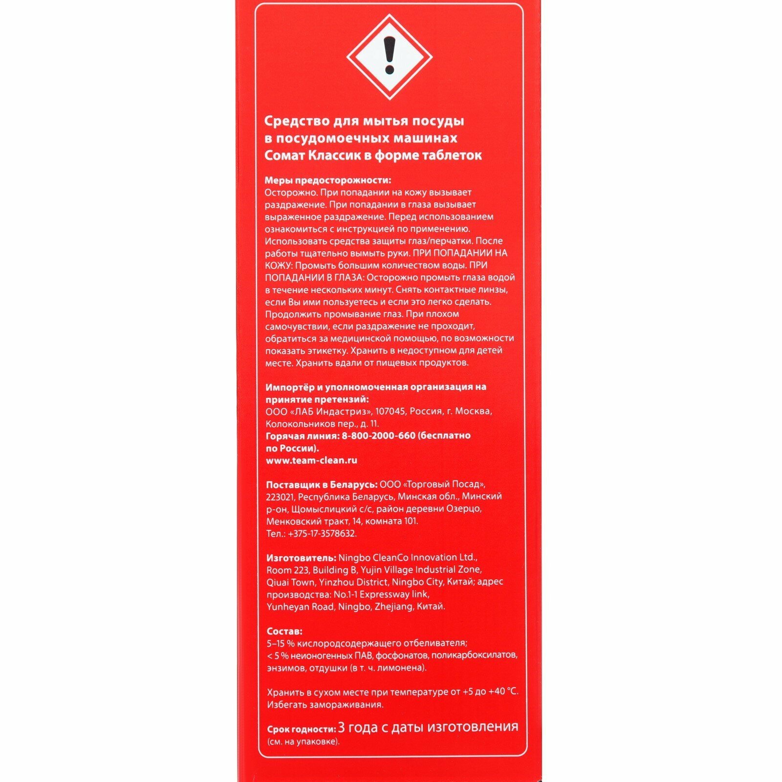 | Отзыв: | а на чистящем средстве somat для посудомойки вообще наклейка снята о сроке годности |