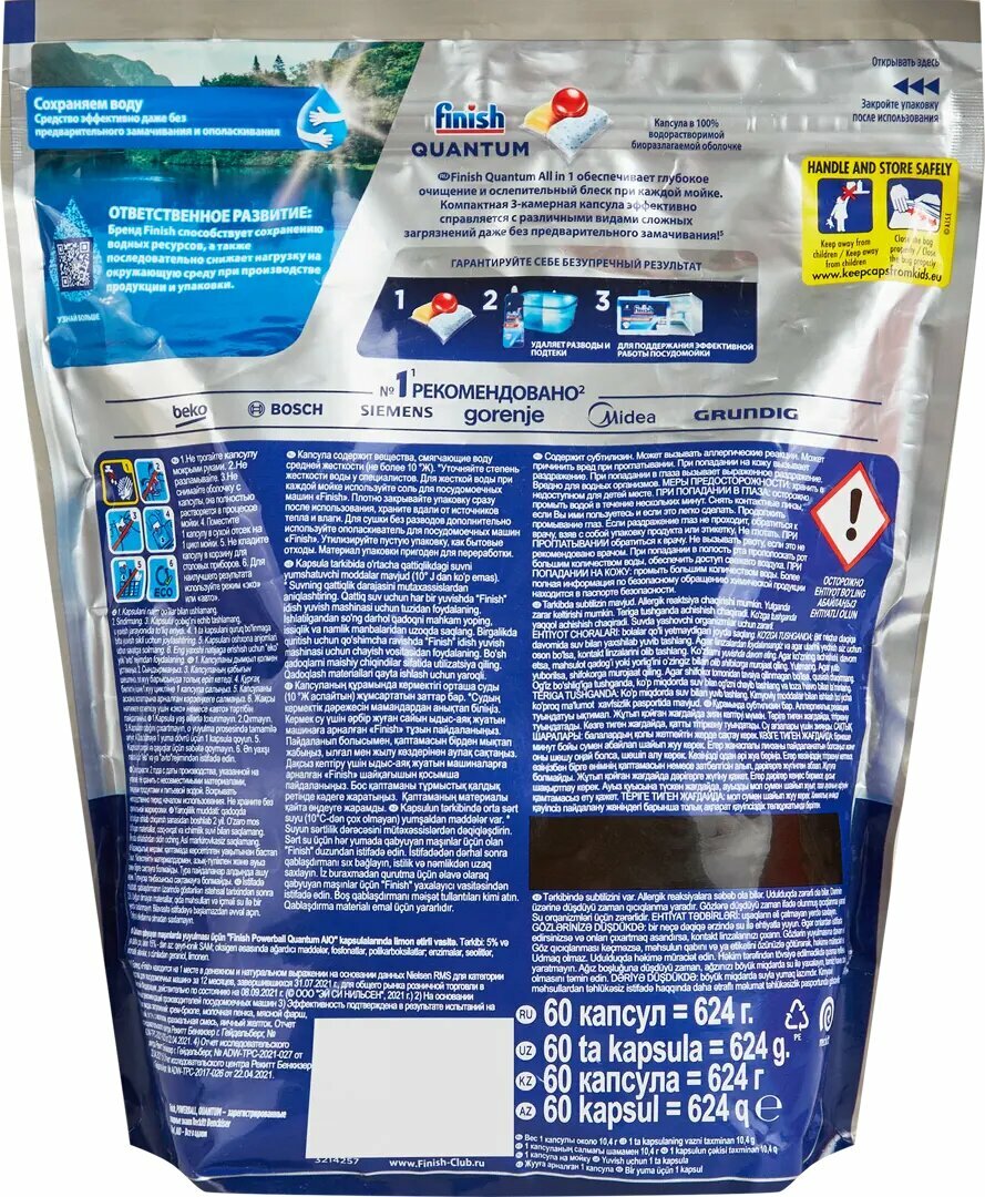 Таблетки для посудомоечной машины Финиш QUANTUM, 60 шт