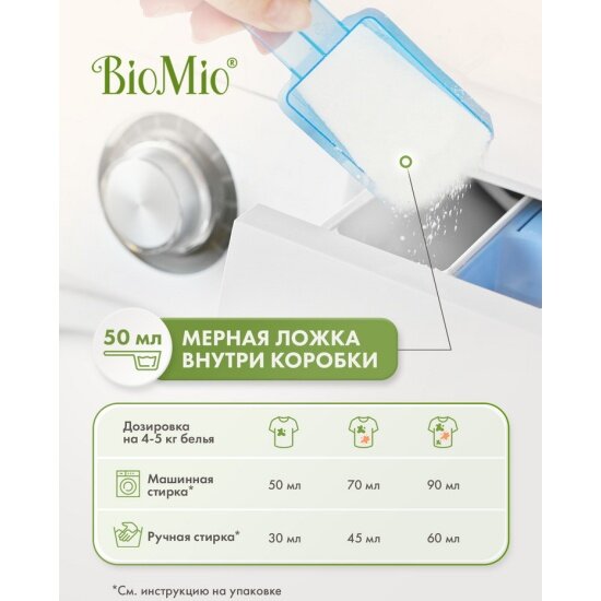 BioMio. BIO-WHITE Экологичный стиральный порошок для белого белья с экстрактом хлопка БиоМио. Концентрат. Без запаха / BioMio. BIO-WHITE Eco Laundry Powder White With Cotton Extract. Concentrate. Fragrance free