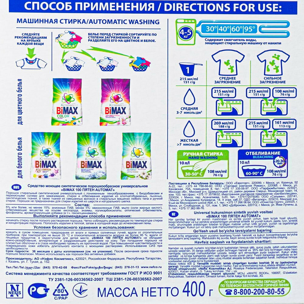 Купить BiMAX Стиральный порошок 100 пятен, автомат, 400 г