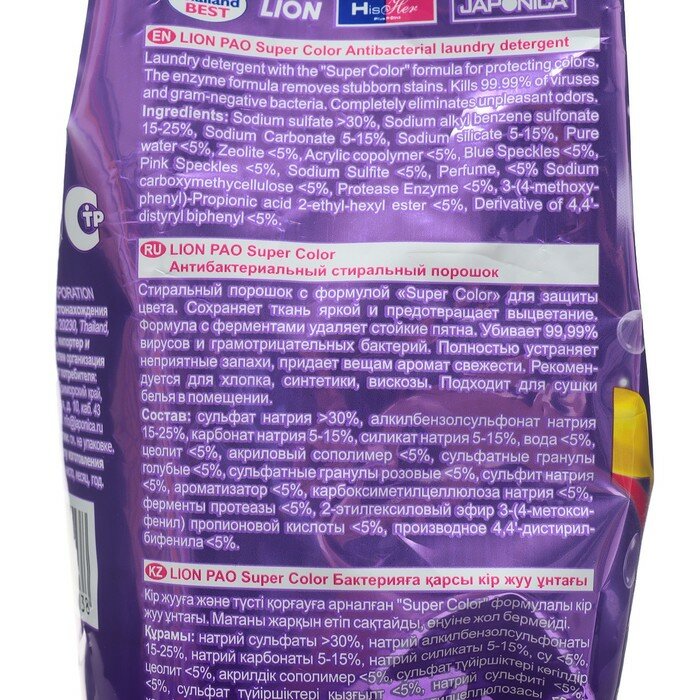Купить Стиральный порошок Lion PAO UV Color для цветного белья, 900 г