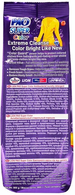 LION PAO Super Color Антибактериальный порошок для стирки цветного белья, 900 г