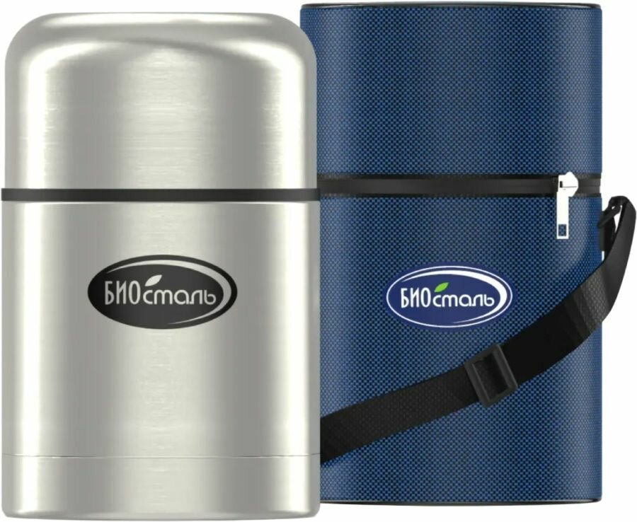 Термос для еды Biostal (1 литр) в чехле, стальной