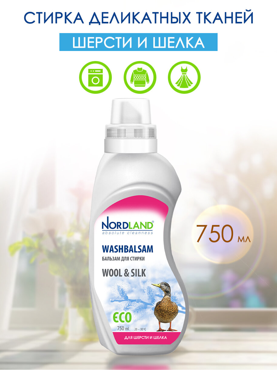 Бальзам для стирки Nordland для шерсти и шёлка, 0.75 л, 0.75 кг, бутылка