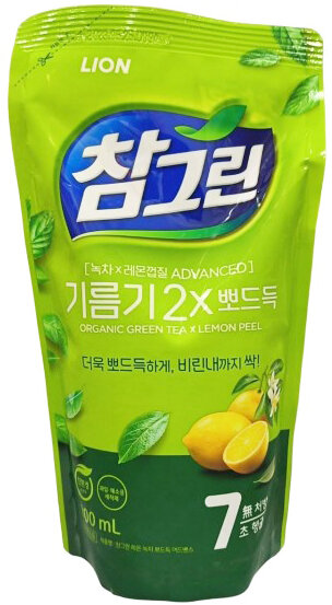 Жидкость для мытья посуды с ароматом зеленого чая Lion Chamgreen 800g refill