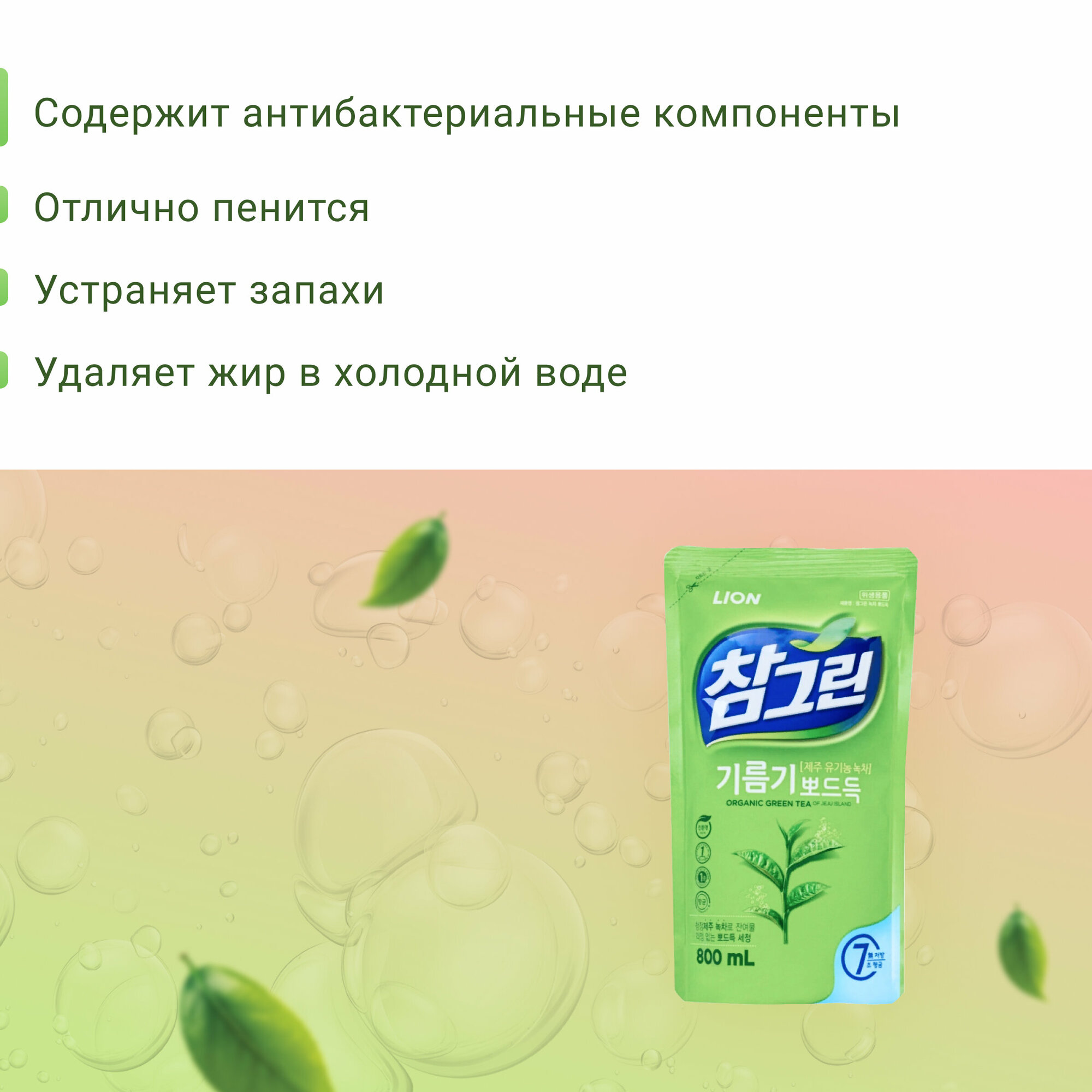 LION Chamgreen - Лион Жидкость для мытья посуды с ароматом зеленого чая, 800 мл -