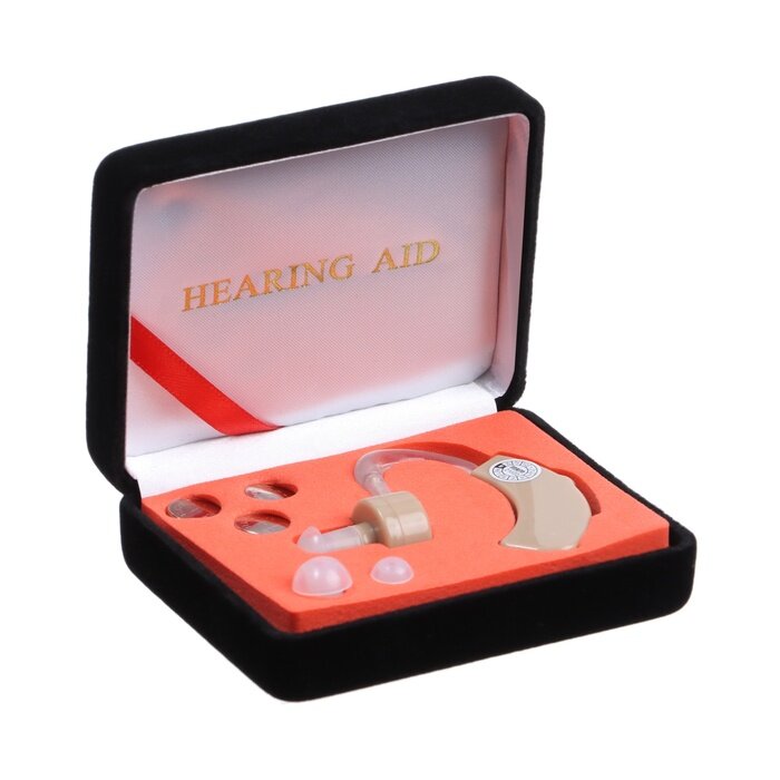 Слуховой аппарат / мощный усилитель звука / бежевый / с батарейками / с футляром из замши / XM-909E