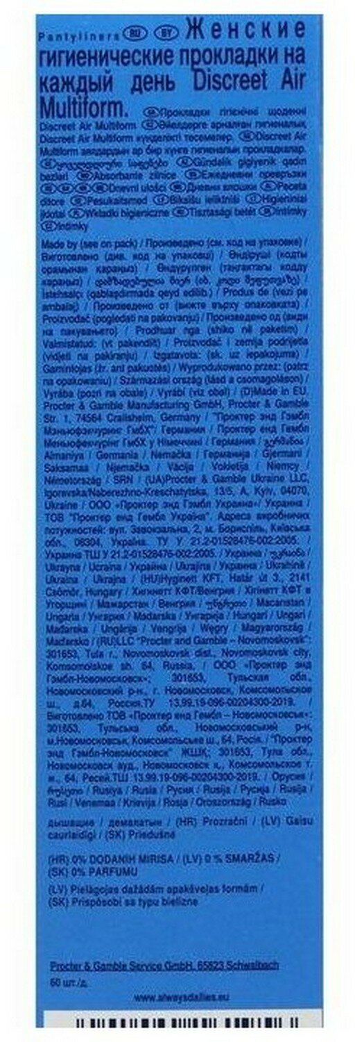 Прокладки гигиенические Discreet Air Multiform Trio, ежедневные, 60шт