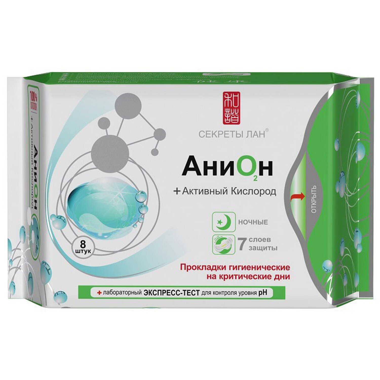 SECRETS LAN, АниОн, Прокладки гигиенические на критические дни, Ночные, (8 шт/уп)