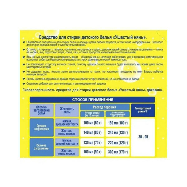 Ушастый нянь Стиральный порошок Ушастый нянь, для стирки детского белья, 400 г