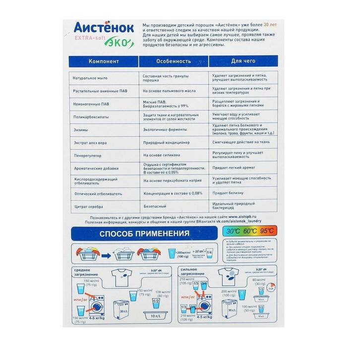 СохранитьСтиральный порошок Аистенок Extra Soft с кондиционером, Алое Вера, 400 гр (5002152) интересное: