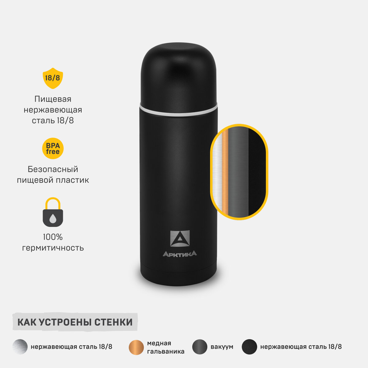Термос 0.5 для чая/термос Арктика 0.5 черный матовый 105-500/термос с кружками