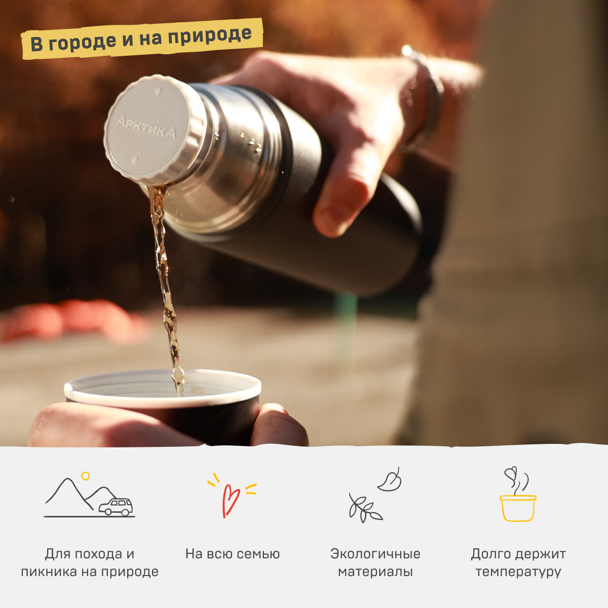 Арктика Термос для напитков компактный Арктика 105-1000 (1000 мл, серебро)