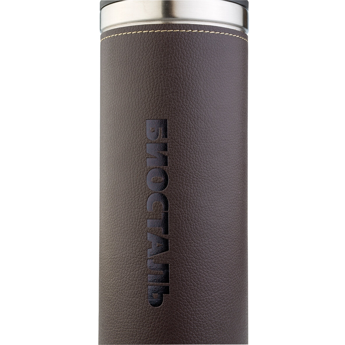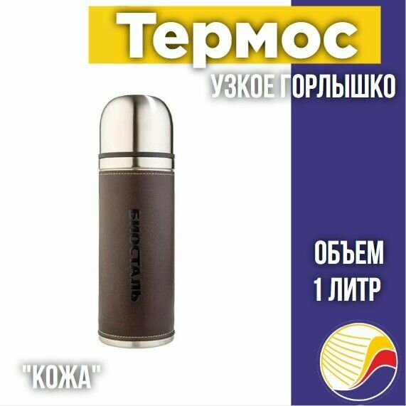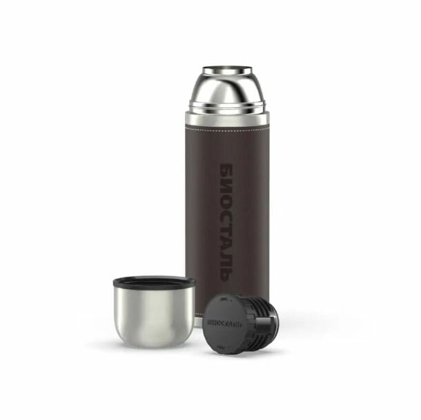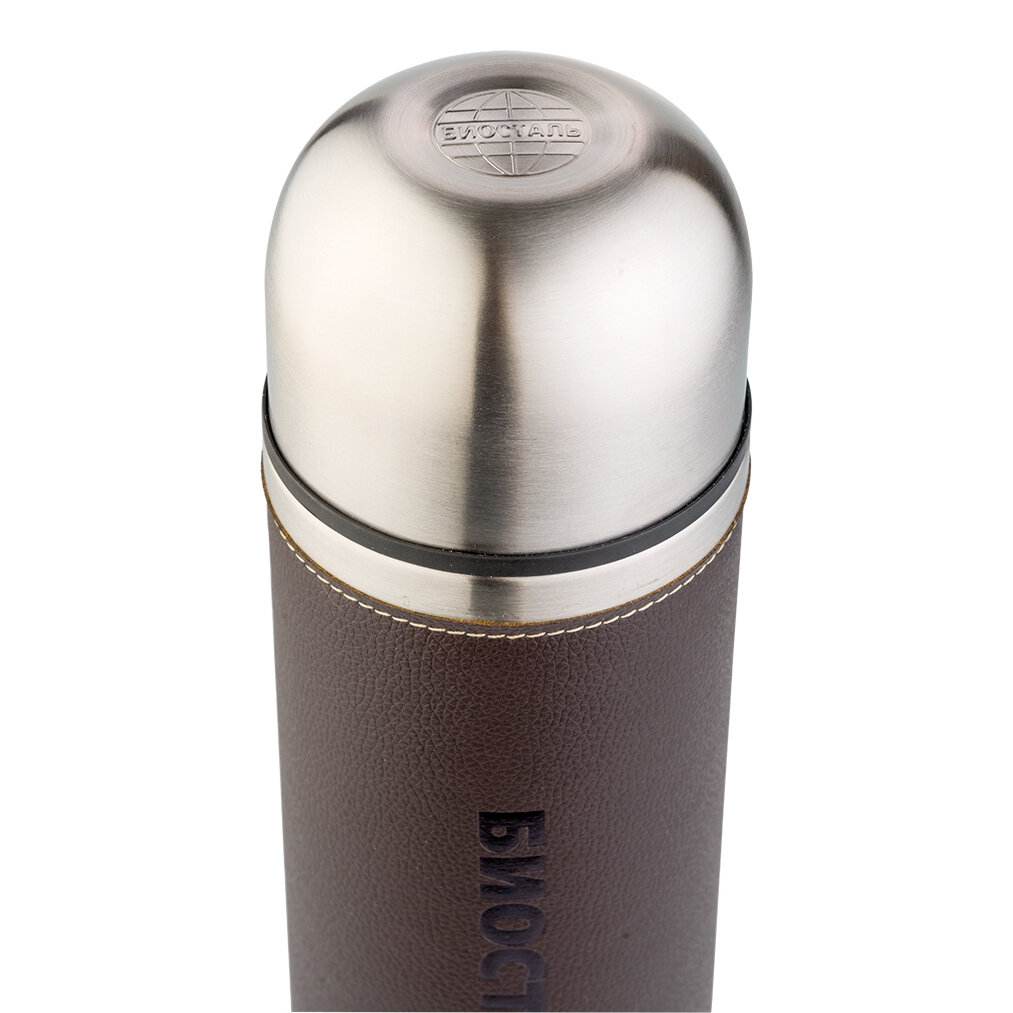 Термос Biostal Охота (0,75 литра) с кожаной вставкой, коричневый
